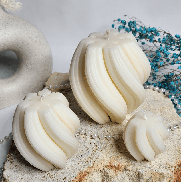גבס אדריכלי דמוי בטון, שעוות סויה ופניני שעווה צמחיות עם עיצובים בקווים נקיים, צבעים רגועים ואסתטיקה מודרנית-קלאסית.